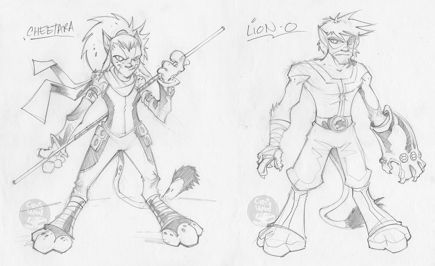 I was tasked with designing new takes on the core Cats, minus Tygra. As a child of the 80’s, I was hyped to do the work. So I rushed home and whipped up the batch of pencil drawings you see here.